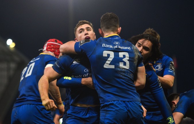 Leinster managed to score 3 tries in the first half to Munster’s 1. It was clear from the off that Leinster’s game plan was to bring the game to the men in red and apply as much pressure as they could early on. It was well rewarded with a penalty after 1 minute which the sniper boot of Ross Byrne kicked over.